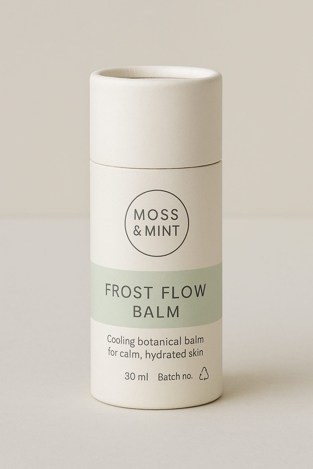 Frost Flow Balm Cool, soothe, and restore. A refreshing solid balm that melts into skin, easing tension and dryness while awakening the senses with natural mint and eucalyptus. Glide over temples, neck, or hands to calm, hydrate, and refresh wherever you are.